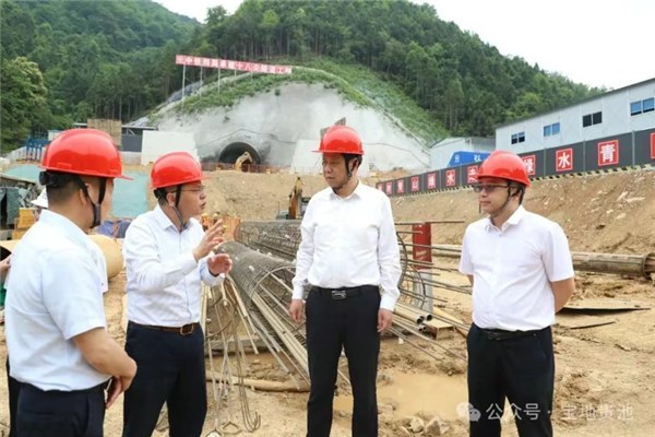 錢松一行先后來到礦產品運輸鐵路專用線江口段及十八尖隧道工程建設現場,通過實地查看、聽取匯報、現場交流等方式,詳細了解項目施工方案、工程進度、安全生產等情況。錢松叮囑施工單位要搶抓當前項目建設“黃金期”,在確保質量和安全的前提下,千方百計加快項目建設進度,盡快形成更多實物工作量,確保項目早日建成、發揮效益。