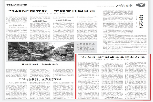 8月21日,中國縣域經濟報刊登文章《“紅色引擎”賦能企業強基行遠》,全文如下: