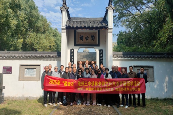 10月25日,池州三中退休干部職工黨支部、教退協池州三中分會聯合組織赴東至開展主題“尊老敬老傳承美德,愛老助老擔當責任”老年人精神文化生活提升研學活動。